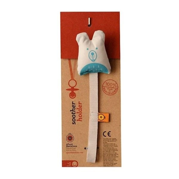 Pour les bébés écolos, et dès la naissance, découverte, confort & réconfort en compagnie de cet Attache sucette à clipser Coton Ours Bleu aPunt Barcelona®. Un attache sucette à clipser amusant, en coton naturel certifié Oeko Tex Standard 100, doté d’un cordon facile à utiliser, … un attache sucette avec une jolie tête d’ours souriante, …. pour ne plus perdre sa sucette. Un attache sucette à clipser amusant et pratique pour accompagner et divertir bébé dans ses premiers moments d’éveil et d’exercice. Facile à saisir grâce à sa faible épaisseur, son petit corps carré, cet attache sucette en coton sera de tous les ballades. Un accessoire bébé aPunt Barcelona® fabriqué à Barcelone, et conçu à partir de tissu 100% coton et remplie de fibre synthétique (100% Acrylique) facile à entretenir et hypoallergénique. Avec cet attache sucette, bébé devient défenseur de la nature, de notre environnement, et du travail des hommes….et n’a peur de rien.