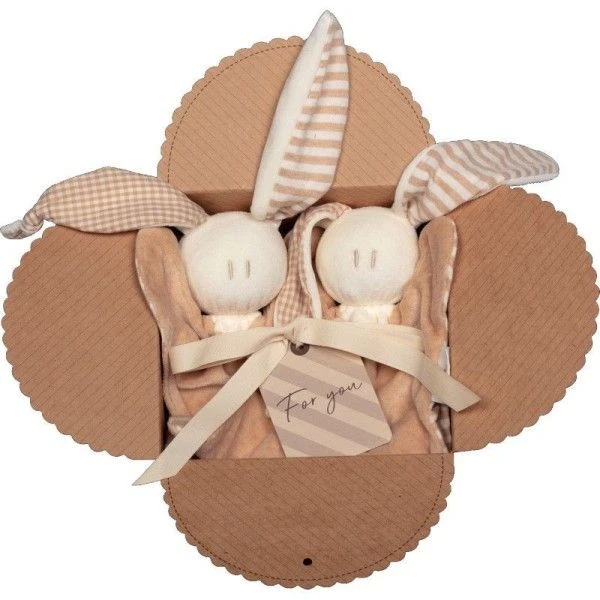 ✎ Les Coffrets 2 Doudous Hochet Coton Bio Keptin-jr Toddel Large Brun 21 cm se composent et sont: