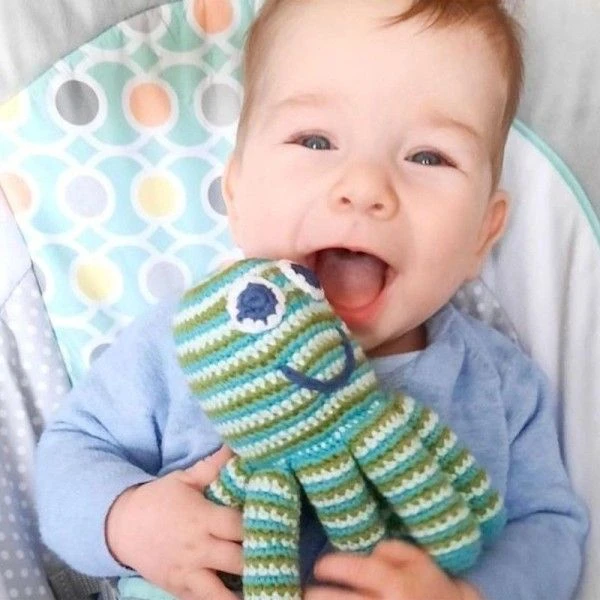 Pour les touts petits, éveil et réconfort avec cette adorable Doudou Poulpe 28cm Pebble® Maille Crochet Coton Bio, en Coton bio entièrement fabriqué à la main par des femmes bangladaises… Ce poulpe rigolo avec ses tentacules colorées, réconfortera bébé lors de gros chagrin. Facile à attraper avec ses multiples tentacules, il sera le confident des petits secrets et partagera toute les aventures…