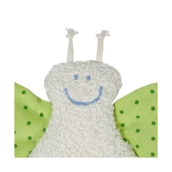 Un large sourire charmeur, de petites antennes à mâchouiller pour mieux le gouter, de grandes ailes colorées à agripper et froisser pour bien le tenir et un air toujours heureux pour accompagner bébé dans toutes ses humeurs. Facile à saisir, à câliner, à secouer, ce petit doudou hochet est le compagnon des touts petits… un petit papillon amusant pour les bébés heureux…