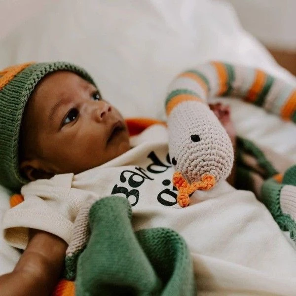 Pour les touts petits, éveil et réconfort avec cet adorable Doudou hochet Serpent Pastel 47cm Pebble® Maille Crochet Coton Bio, en Coton bio entièrement fabriqué à la main par des femmes bangladaises… Ce doudou hochet tout doux amusera bébé avec son petit grelot. Facile à attraper avec sa faible épaisseur, ce doudou hochet stimule l’ouïe et le toucher avec sa maille au crochet en coton bio tout doux. Et pour ne plus avoir peur des serpents comme les petits bangladais, bébé est en bonne compagnie, ce petit serpent a une bouille à croquer et les bébé sont ravis!
