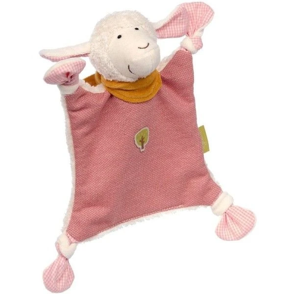 ✎ Les Doudous plats à nœuds Bio Sigikid® Mouton Velours de coton & Vichy rose 23 cm détails