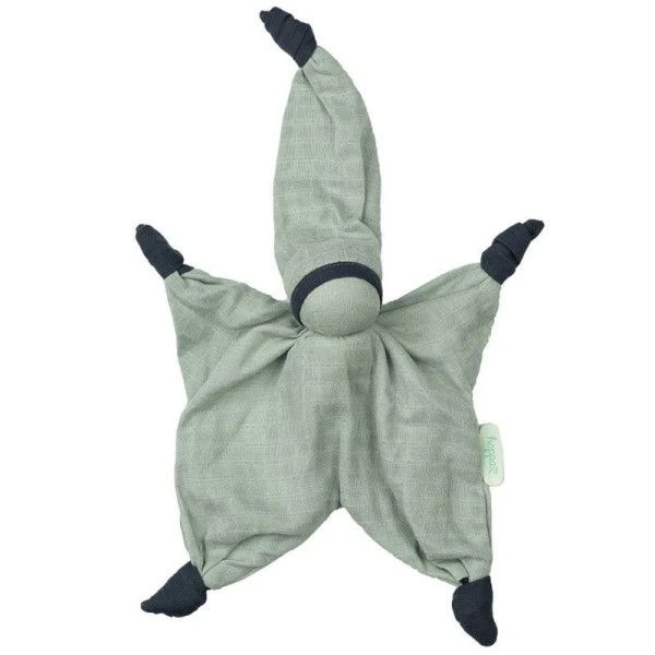 ✎ Les Doudous Plats bébé Hoppa® Lutin Sisco Mousseline Vert d’eau 24cm Coton Bio GOTS détail