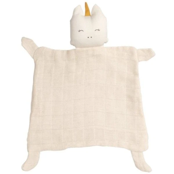Pour les petits bébés écolo, et dès la naissance, Eveil, douceur et réconfort en compagnie de ce super Doudou Plat Carré Licorne Fabelab® Coton Bio GOTS de couleur Blanche avec la corne Miel. Un superbe doudou Bio, souriant, rayonnant de bonheur et de grâce, et aussi prête à affronter le monde en compagnie d’un tout petit. Un doudou de forme carrée en Lange de coton bio,avec 4 angles faisant office de pattes et idéales pour mâchouiller. Un doudou pour les bébés dès le premier age, avec une jolie bouille sympathique, simple, douce et tendre dont les traits d’expression assez neutre, lui confère cette identité unique. Facile à saisir, à câliner grâce à ses appendices variés (oreilles, bras, jambes), notre Doudou Licorne, saura prendre soin de bébé, et lui apporter douceur et réconfort.