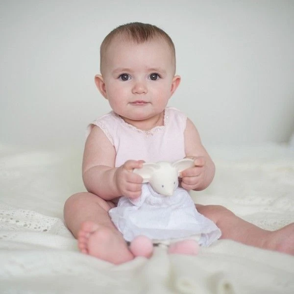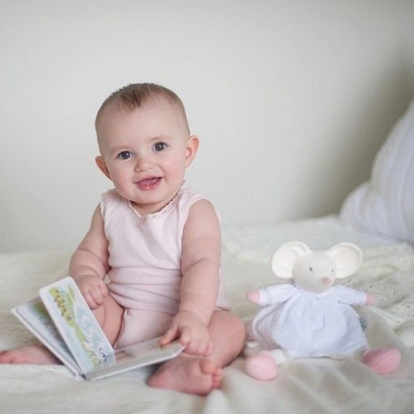 Pour les bébés écolos dés les premiers mois … pour jouer, faire des câlins et aussi, soulager des gencives douloureuses,… éveil confort et réconfort avec ce joli Doudou Poupée Caoutchouc Naturel & Coton Meiya la Souris Meiya & Alvin®. Un jouet ludique sain et naturel, idéal pour jouer et développer ses capacités…, un jouet naturel, écologique et durable pour résister aux jeux, aux léchages et machouillages nécessaires à la découverte du monde.
