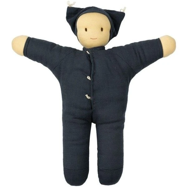 ✎ Les Doudous Poupée de Coton Bio Matty Mousseline Bleu marine Hoppa® détails