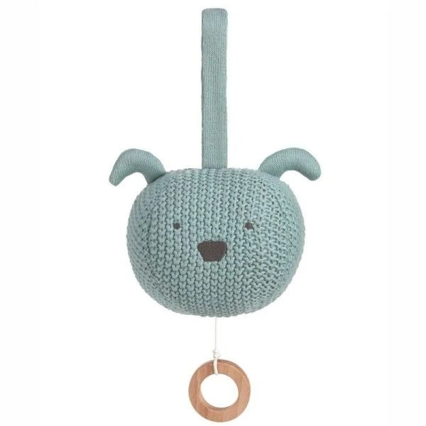 La boîte à musique en tricot est composée à 100% de coton bio, avec un garnissage en polyester. Elle est disponible dans l’un des trois mignons motifs chien, chat ou souris, et entièrement lavable à 30° en programme délicat avec son mécanisme étanche.