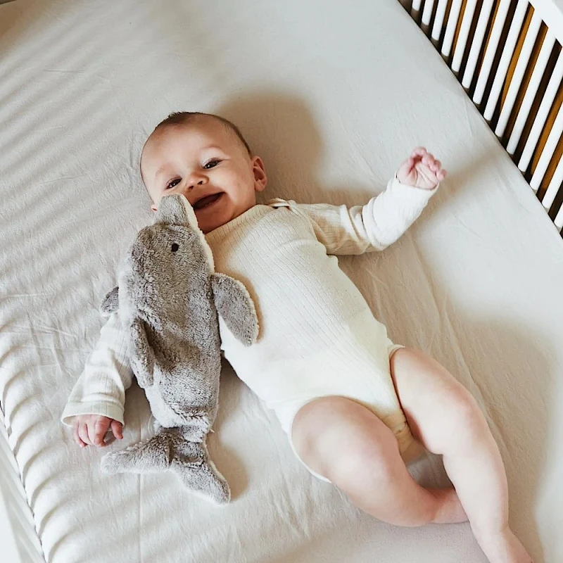 Bouillotte Pépins de raisin : L’inertie des pépins de raisin permet au doudou de garder la chaleur ou la fraîcheur, et ainsi apaiser bébé en lui apportant confort et réconfort. Le petit dauphin se transforme donc en une agréable bouillote chaud/froid facile à utiliser, et très saine. On donne d’ailleurs aux pépins de raisin, comme à l’épeautre des vertues thérapeutiques, mais c’est bien le confort que ce petit dauphin, apporte à bébé, et sa jolie bouille, qui les rendront inséparables.