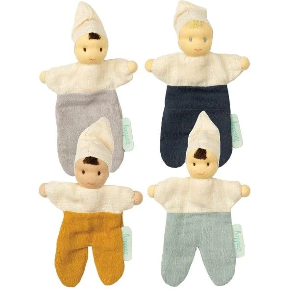 ✎ Les Petits Poupons Mousseline coton bio Mini Mix bicolore 17cm Turbulette Hoppa® détails
