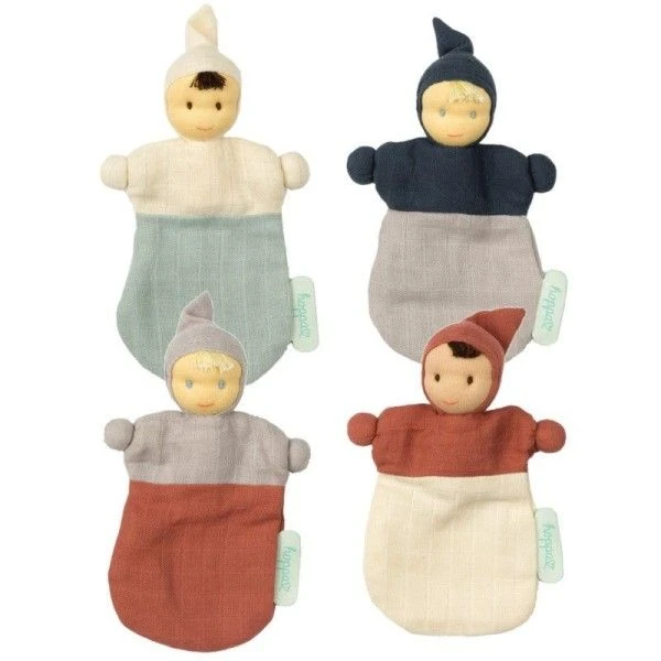 ✎ Les Petits Poupons Mousseline coton bio Mini Mix bicolore 17cm Turbulette Hoppa® détails