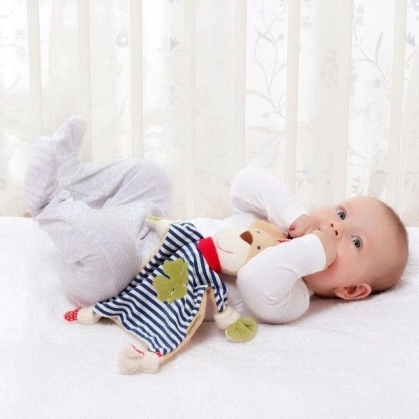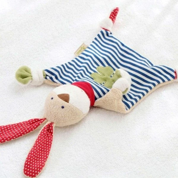 Pour les bébés bio & écolo, dès la naissance, Eveil, confort & réconfort en compagnie de ce petit doudou Plat Sigikid® Doudou Plat Lapin Marin Green 38 cm en Coton 100% Bio ‘Organic’ de la gamme ‘Green‘. Amoureux de la nature et défenseur de l’agriculture biologique, bébé le revendique avec ce Lapin Marin Chic & écolo. Les tissus (Jersey, Velours,…) et autres textures douces de ce petit Lapin apportent des nuances au touché et visuellement, permettant à l’enfant de développer ses sens. Avec son grand ventre rayé, ses nœuds à mordiller et ses grandes oreilles, notre notre ami Lapin toujours souriant, accompagnera bébé dans ses aventures et saura le réconforter dans les moments difficiles. Facile a agripper, grignoter ou mâchouiller ce doudou lapin offre de multiples petits appendices pour le saisir et ne plus le lâcher. En compagnie de ce Lapin Marin Bio en Coton Kba, bébé est prêt à affronter le monde, en douceur, en couleur et en sécurité: Le Doudou est en coton à 100%, un Coton Bio issu de l’agriculture Biologique (Kba : Agriculture Biologique Contrôlée).